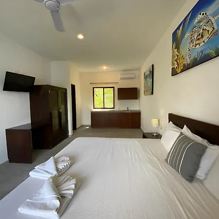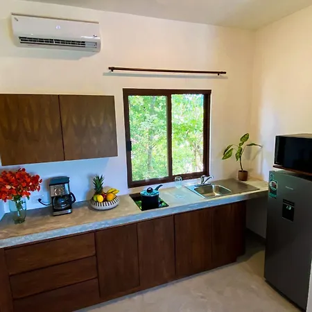 A Tulum városi ingatlanban klímaberendezés, valamint tea- és kávéfőző berendezés biztosítja a szobák kényelmét. A szobákban széf, tornác és erkély szintén biztosított. Az Ön kényelmét külön WC és zuhanyzó, valamint hajszárító és törölközők biztosítják. A hotel medencére néző szobákat kínál.